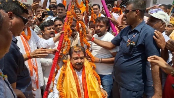 उर्वशी सिनेमा रोड स्थित चनपटिया विधायक उमाकांत सिंह के आवास पर प्रदेश अध्यक्ष को लड्डू से तौला गया। प्रदेश अध्यक्ष को तौलने में 80 किलोग्राम लड्डू का उपयोग किया गया।
