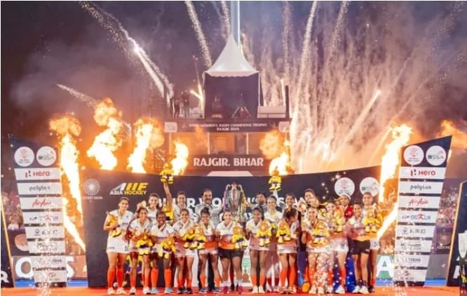भारत की महिला हॉकी टीम ने इस एशियन चैम्पियन्स ट्रॉफी के दौरान बेहतरीन खेल का प्रदर्शन किया। टूर्नामेंट के दौरान, टीम ने अपने सभी मुकाबलों में शानदार प्रदर्शन करते हुए फाइनल तक का सफर तय किया। भारत की टीम ने चीन, जापान और कोरिया जैसे देशों को हराया, जो महिला हॉकी में दिग्गज माने जाते हैं।टीम की कप्तान ने इस जीत को सभी खिलाड़ियों की मेहनत का परिणाम बताया और कहा कि यह जीत देशवासियों के लिए समर्पित है। उन्होंने कोच और सहायक स्टाफ की भी सराहना की, जिनकी मदद से टीम ने इस ऐतिहासिक जीत को हासिल किया।